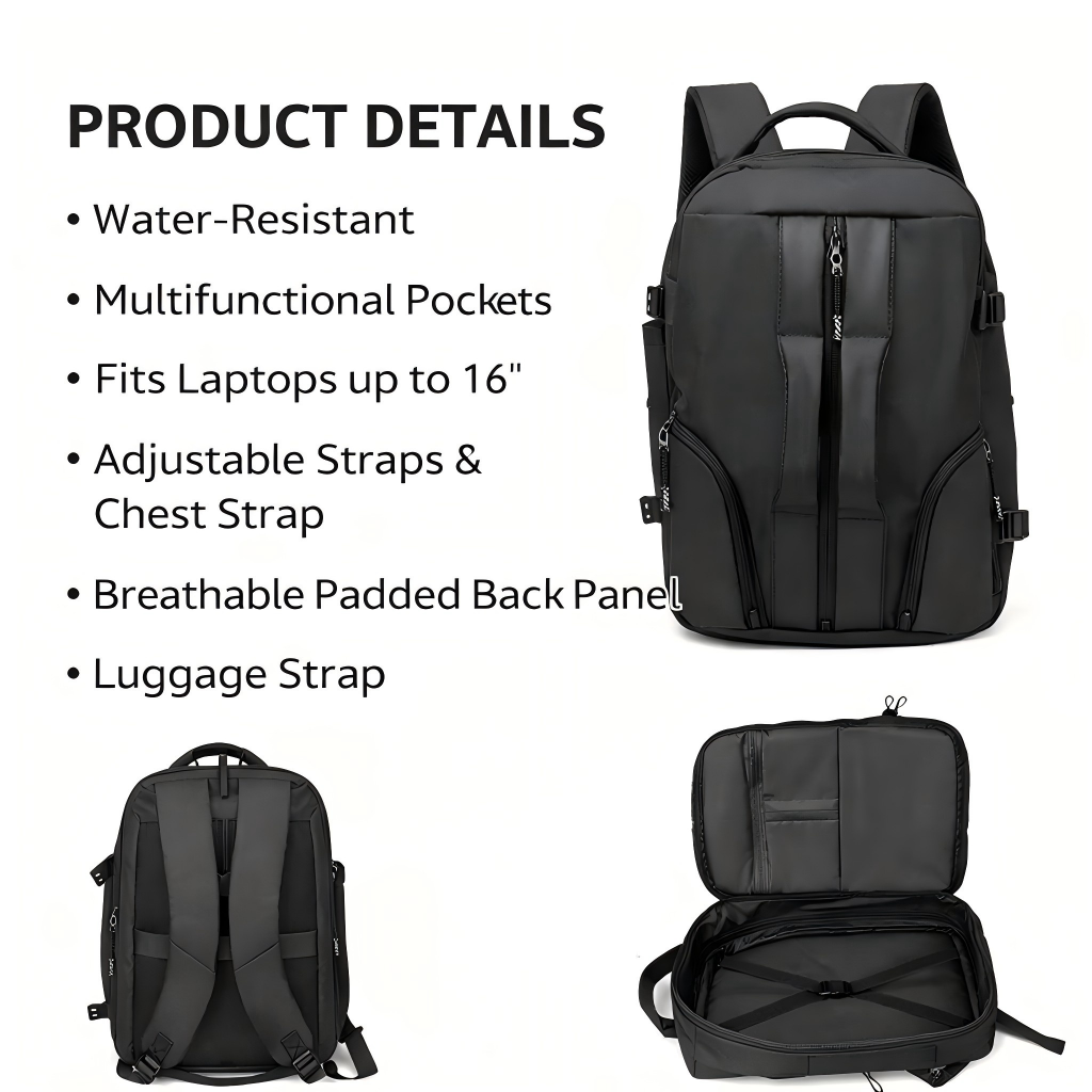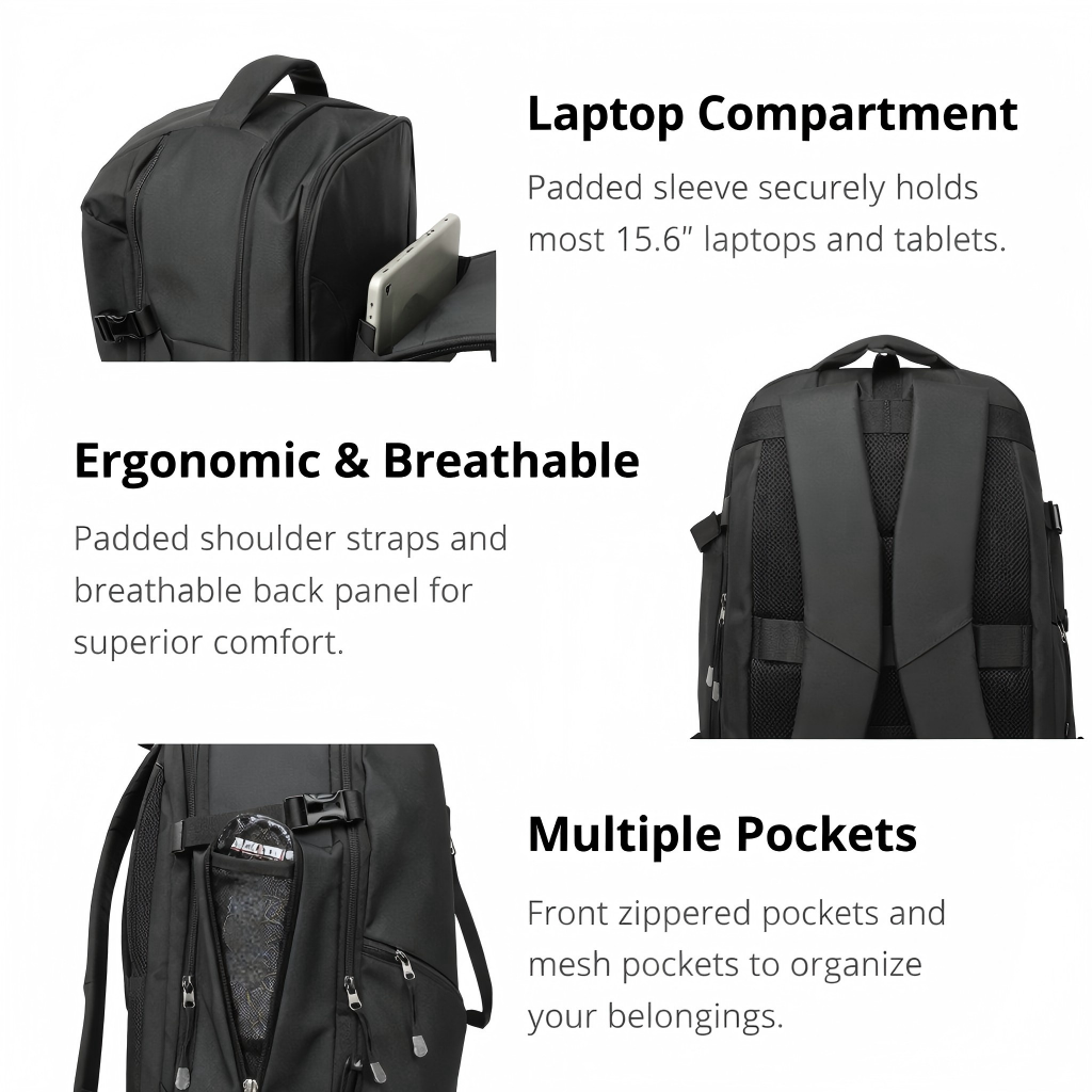 Black Business Laptop Bag, Large Capacity Water-Resistant Commuter Backpack