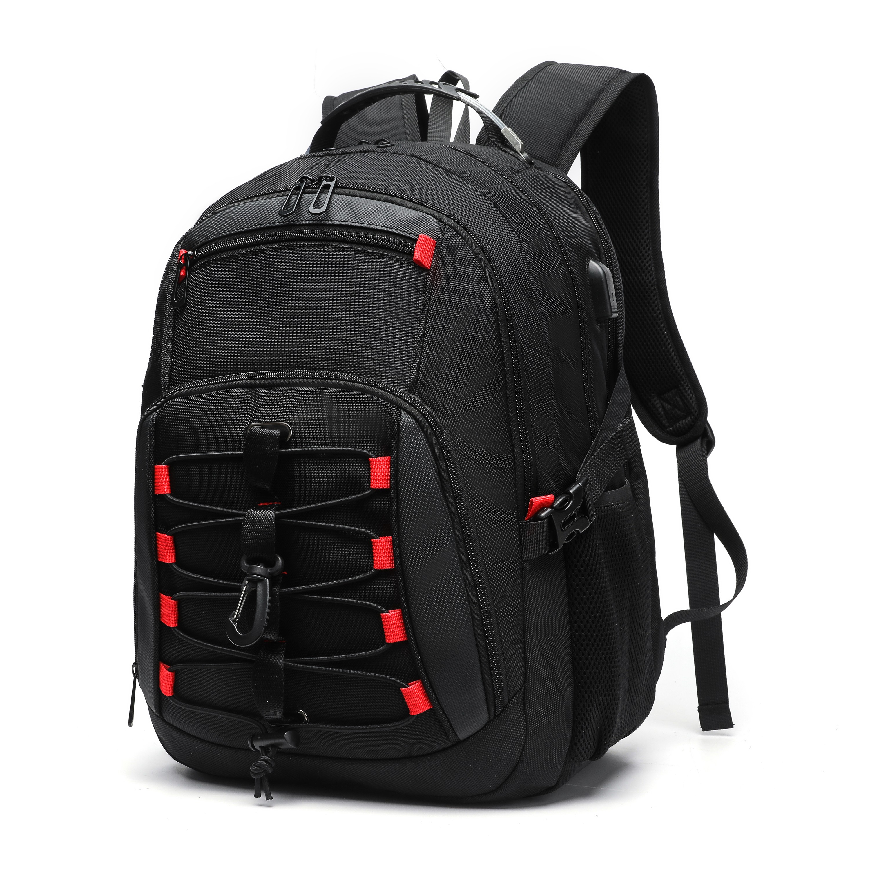 Black-Red Large Capacity Outdoor Backpack, Water-Resistant Laptop Bag