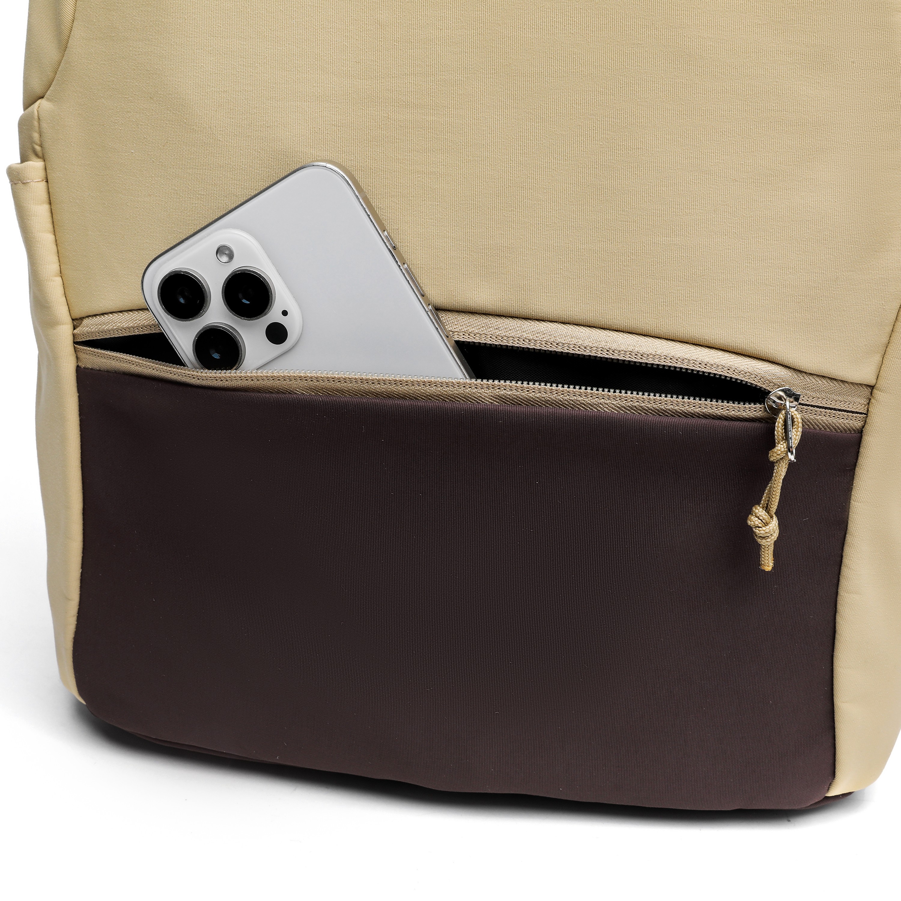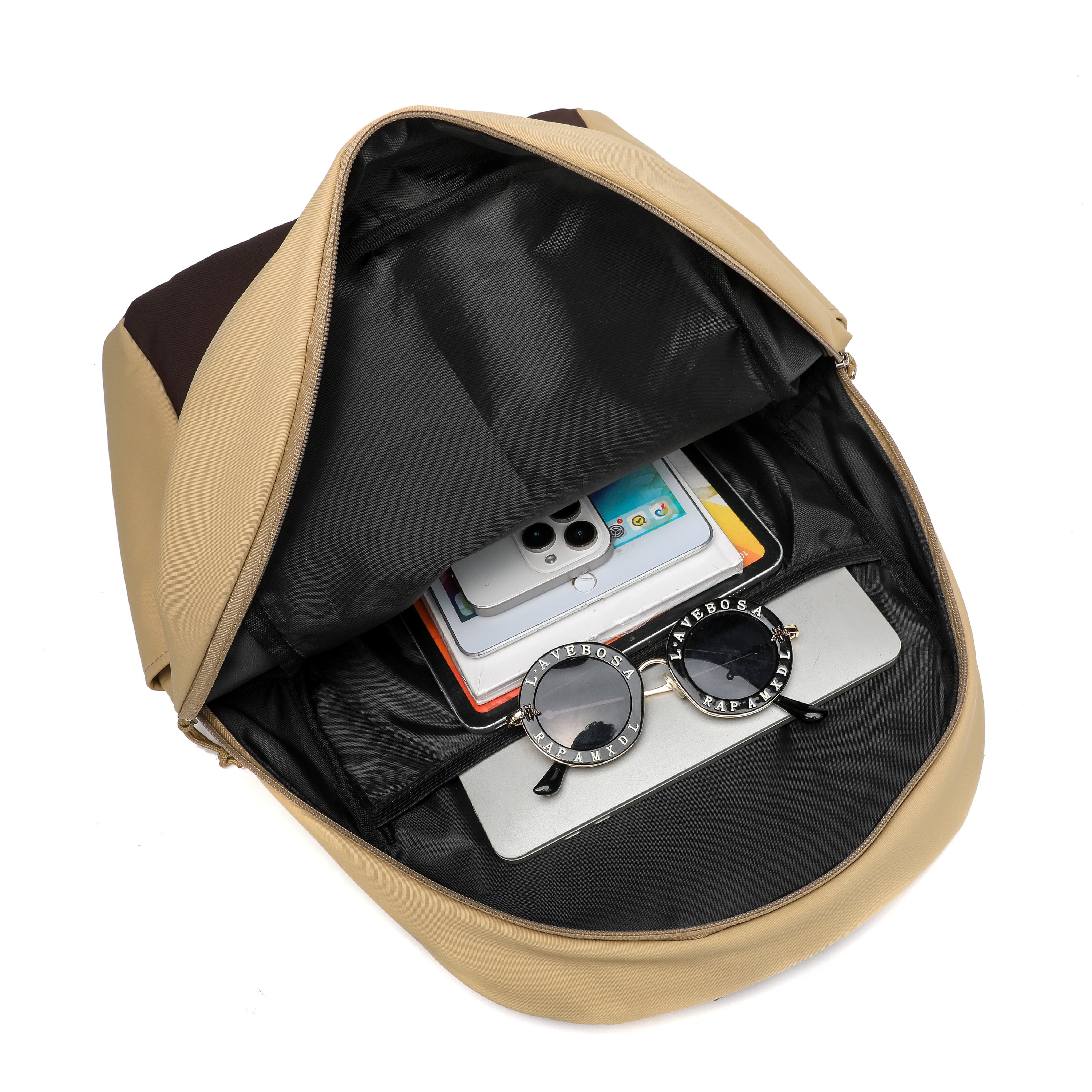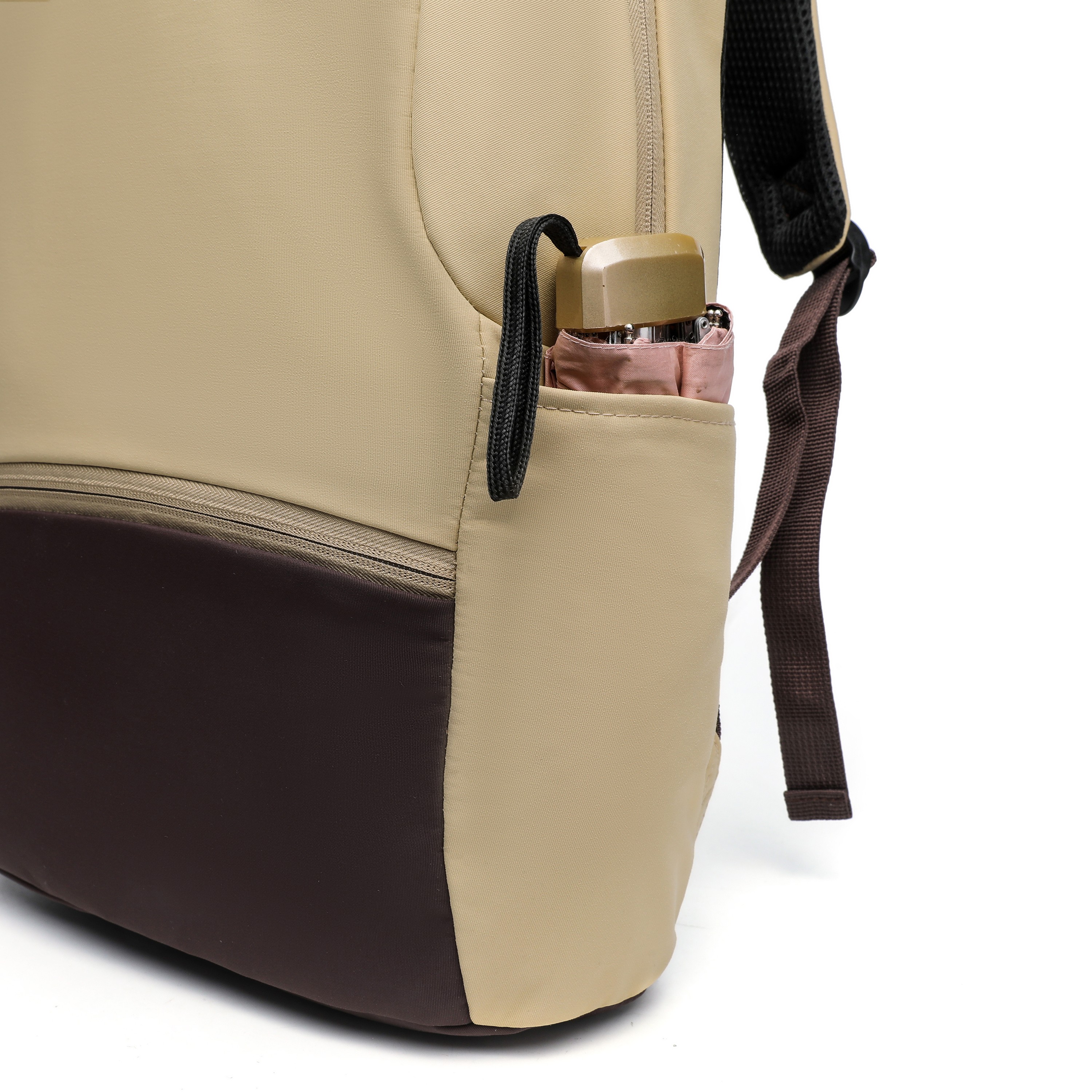 Khaki Breathable Mesh Back Backpack, Daily Commuter Lightweight Bag