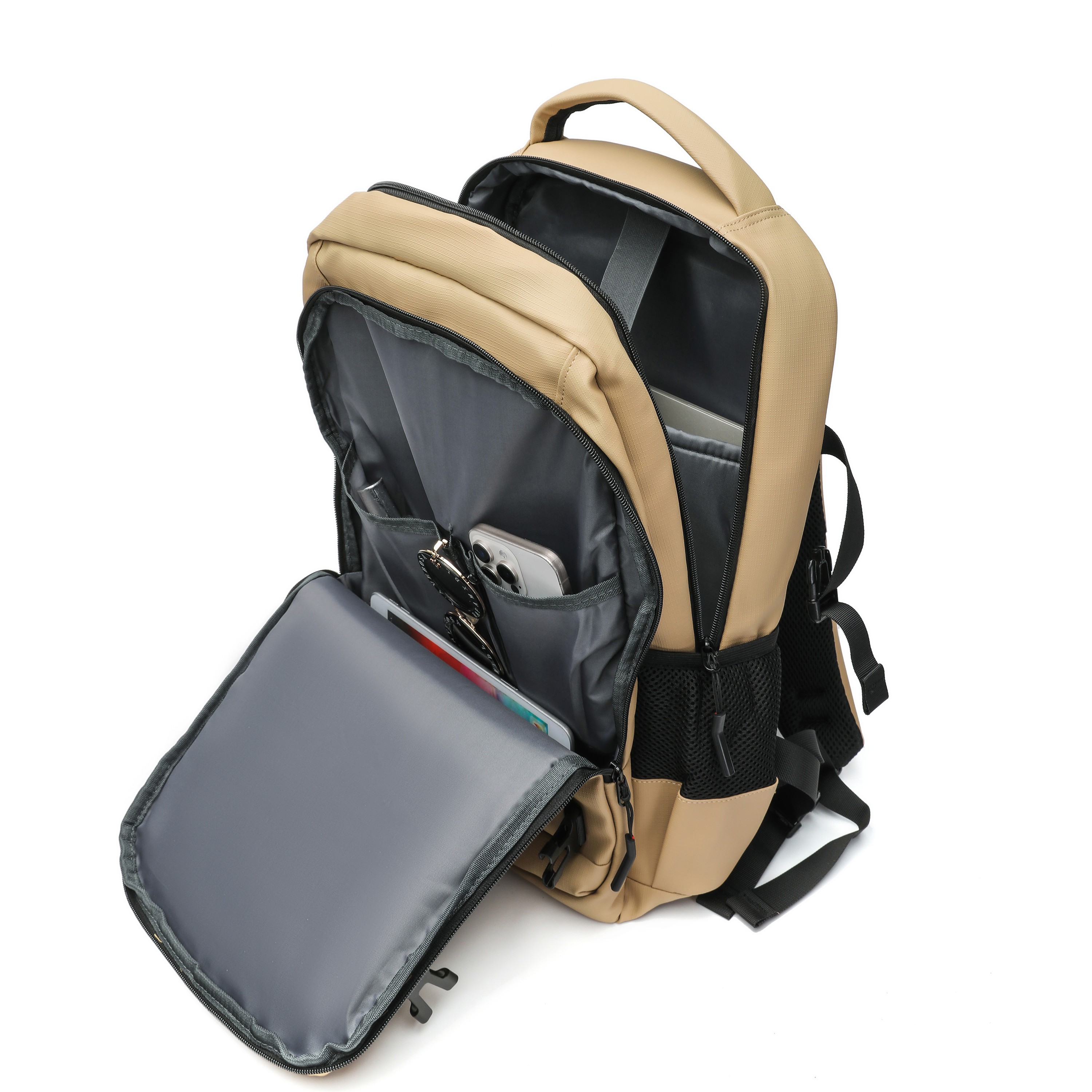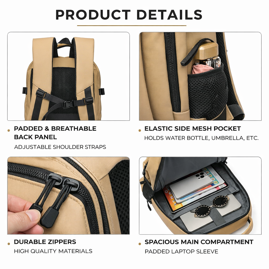 Khaki Waterproof Business Laptop Backpack, Fits 15.6" Laptop