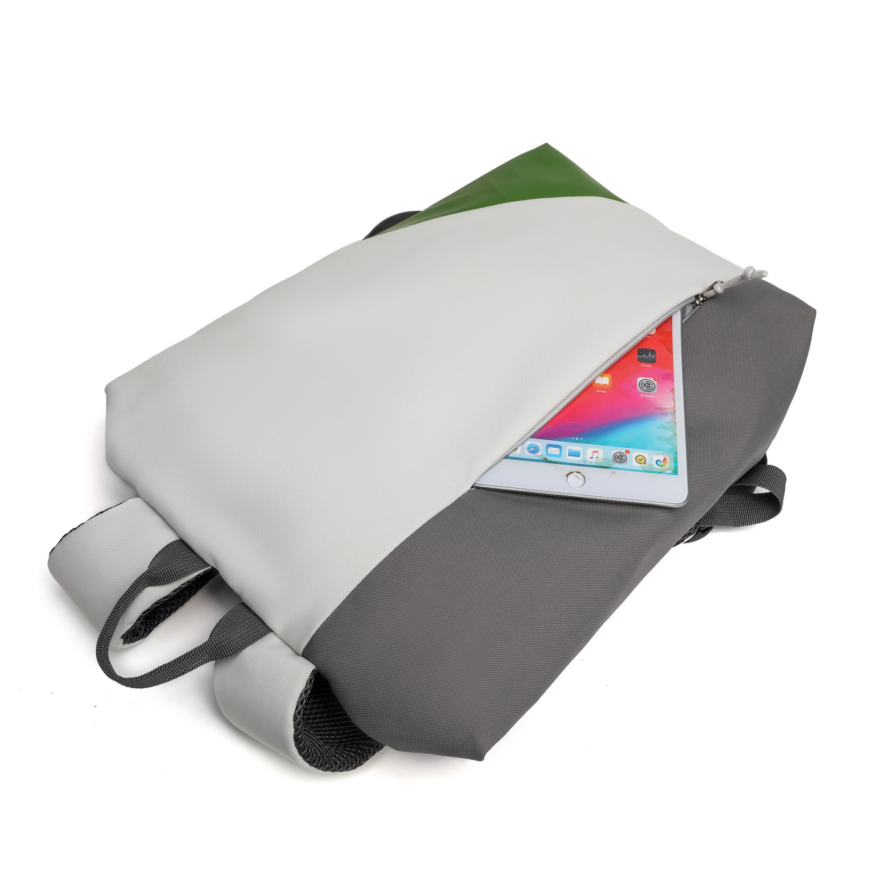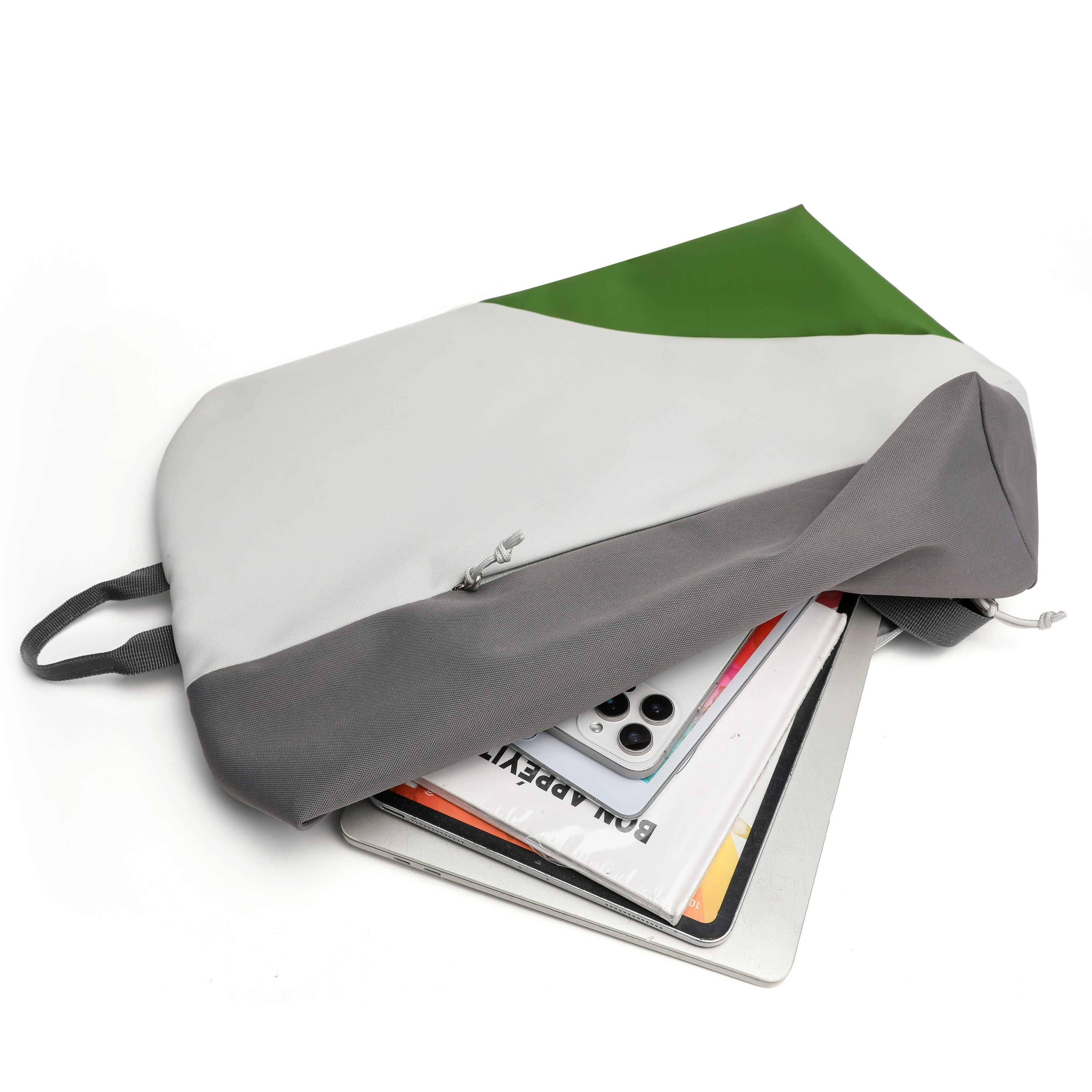 Light Gray-Green Geometric Backpack, Stylish Versatile Commuter Minimalist Bag