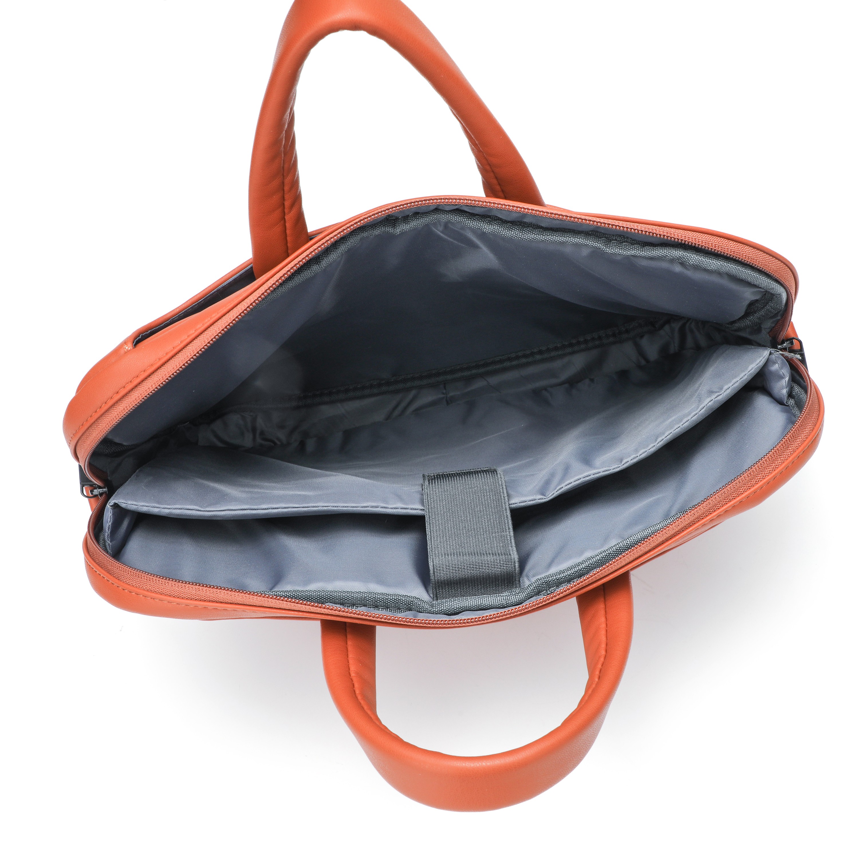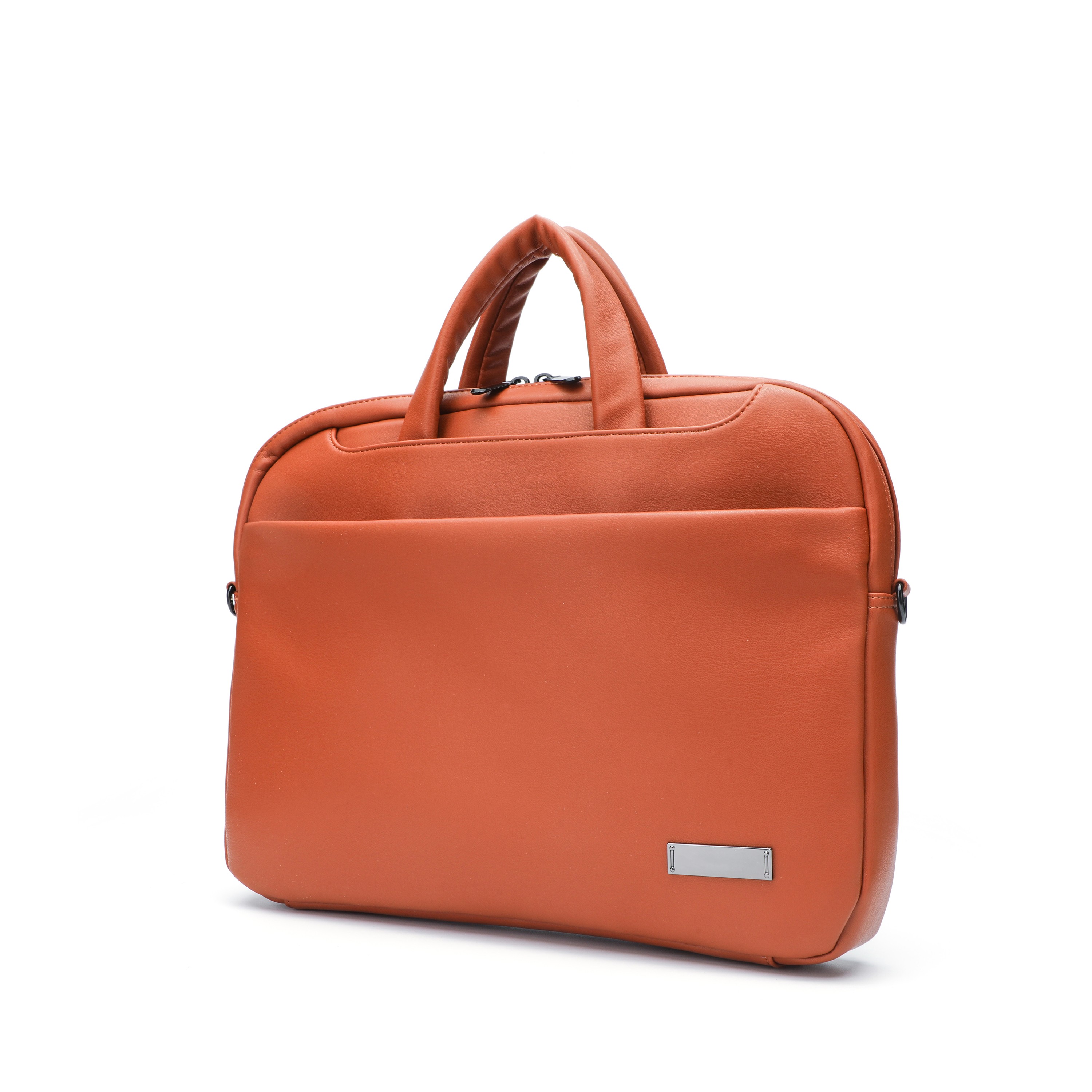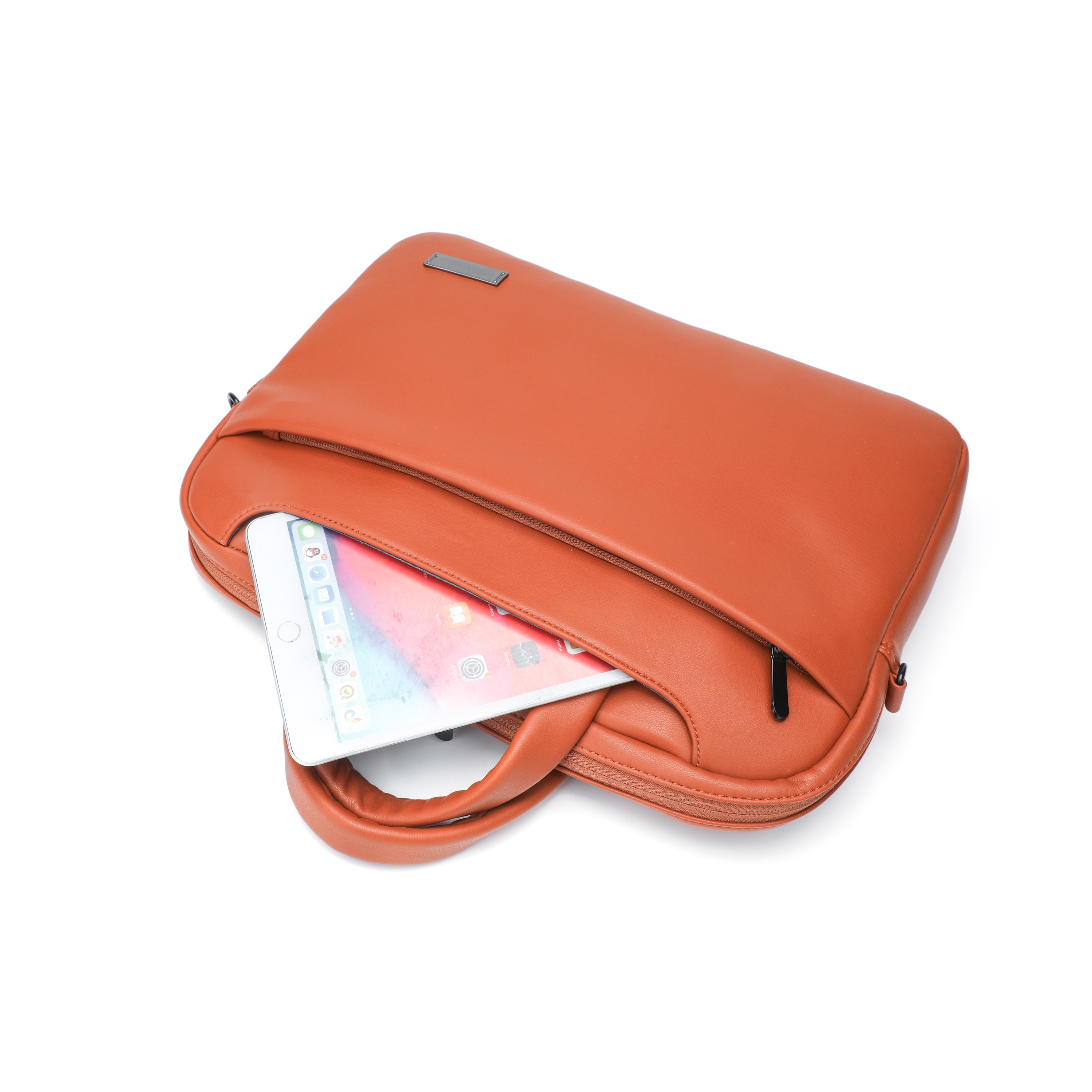 Orange PU Multi-Compartment Laptop Sleeve, Daily Office Handbag